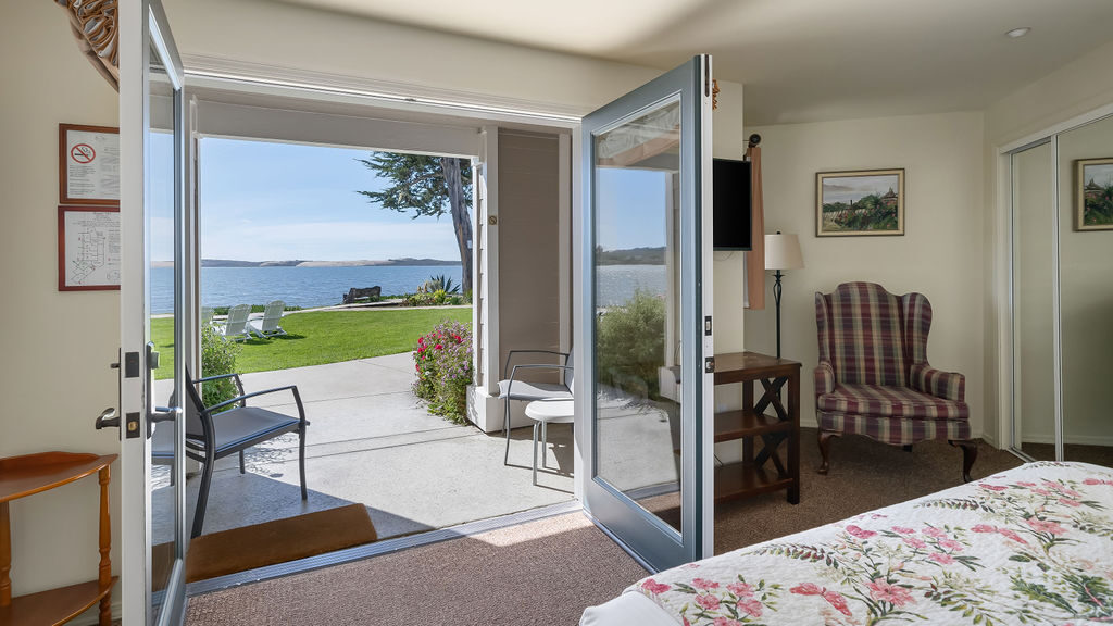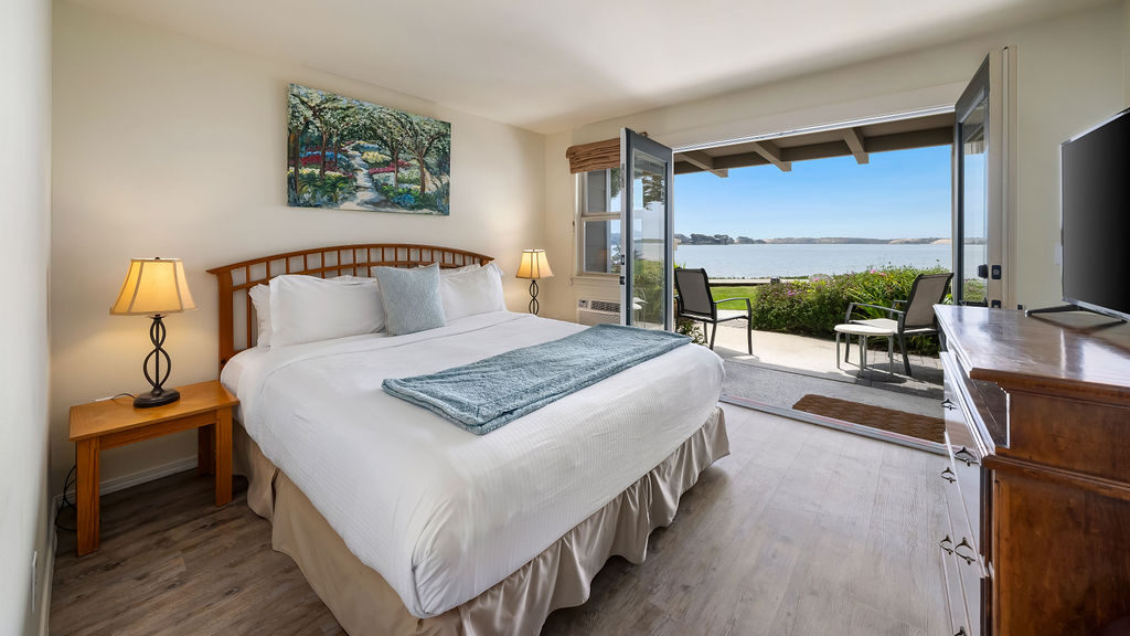 Experience comfort and relaxation in our Bay View King Patio rooms at Back Bay Inn. These rooms feature a comfortable king bed and a private patio with bay views, providing a serene setting to enjoy California’s Central Coast.