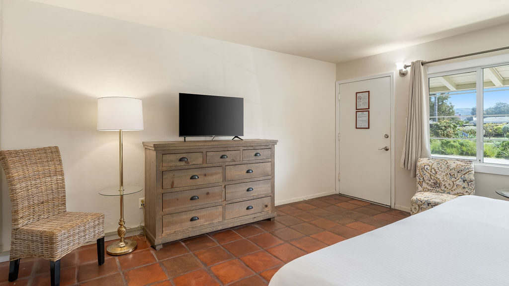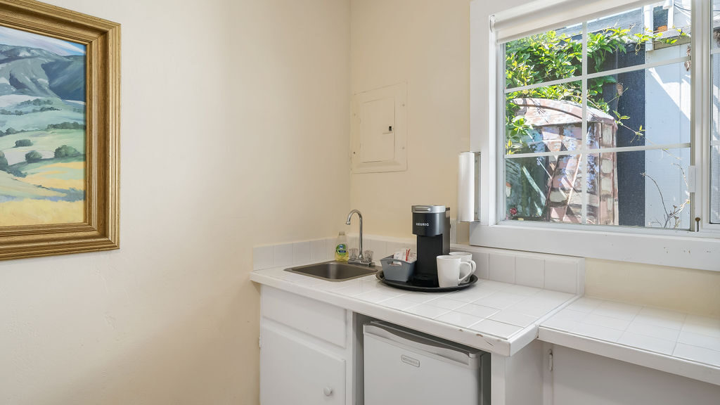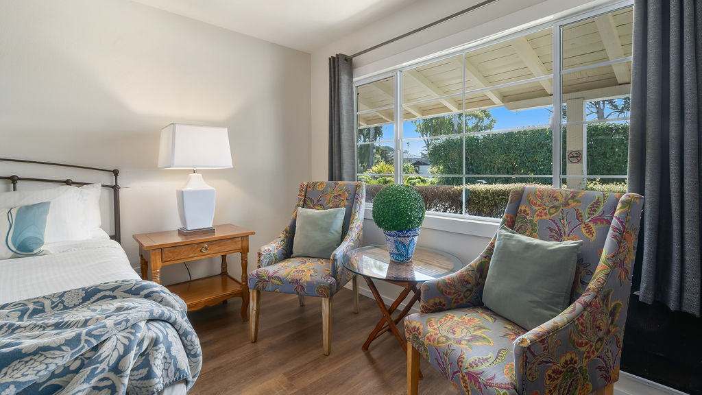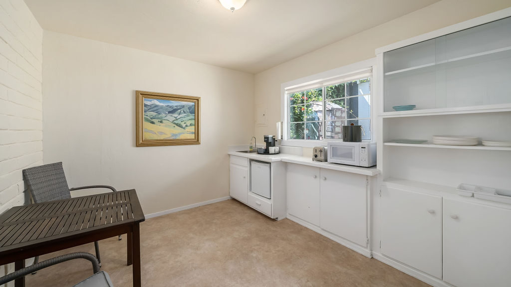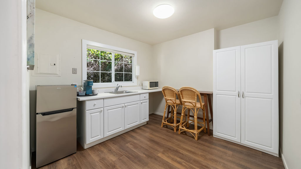 Immerse yourself in the tranquility of our Cypress Kitchenette rooms, set amidst our picturesque gardens. These accommodations provide both comfort and ease with a king bed and a well-equipped kitchenette, complete with a dining table and chairs. Enjoy the convenience of the room's amenities and the peaceful ambiance at Back Bay Inn. Please note that this room is pet-friendly.