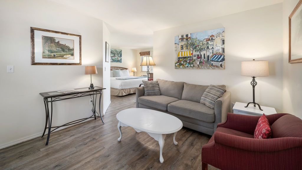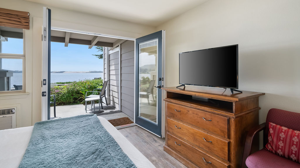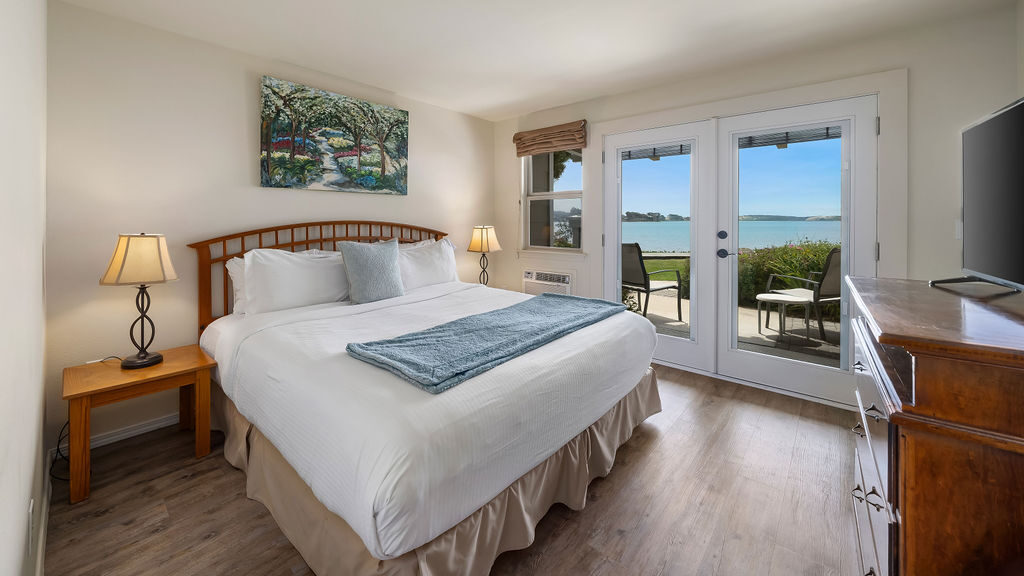 Experience spacious comfort and stunning bay views in our tranquil Bay View King Suite at Back Bay Inn. This suite offers a king bed and a queen sofa bed, providing plenty of room for your relaxation. Step onto your private patio to enjoy picturesque bay views and immerse yourself in the serene ambiance of California's Central Coast. Wake up each morning to the refreshing ocean air, enhancing your coastal getaway experience.